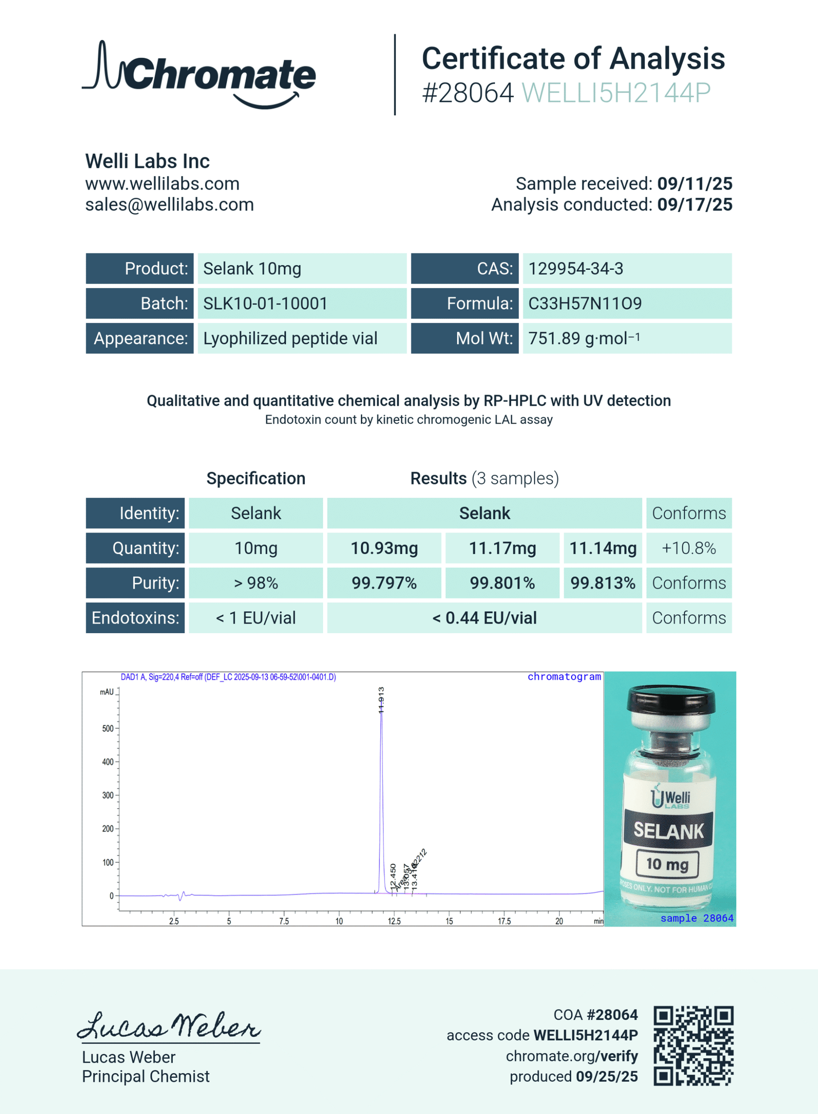 Unlike many suppliers, Welli Labs tests every single batch we release. Each product is accompanied by a Certificate of Analysis (COA) that provides clear, verifiable data researchers can depend on.